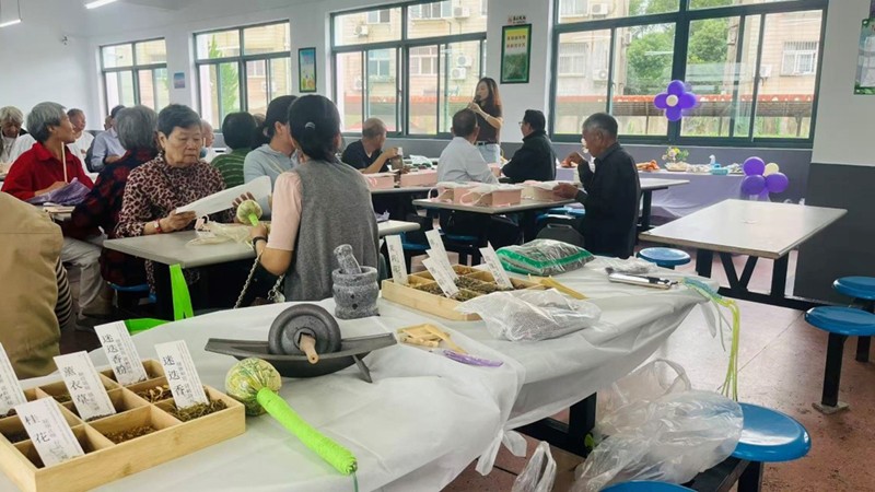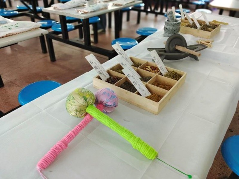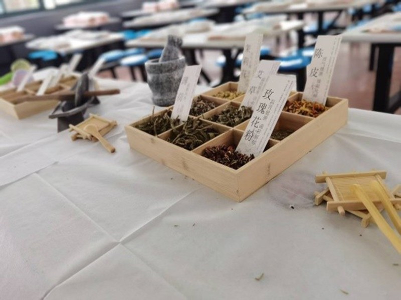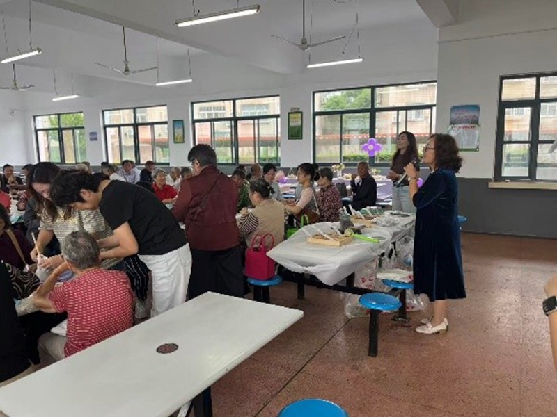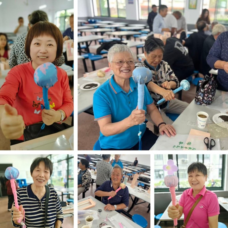 茶叙过后,趣味十足的艾草锤手工制作环节接棒。工作人员提前备好艾草、棉布等材料并演示步骤,老师们兴致勃勃地动手实践,填充艾草、巧手扎绑,互相交流技巧,欢声笑语不断。不一会儿,一个个散发着艾草清香的艾草锤相继完成,大家捧着作品合影,脸上满是成就感。