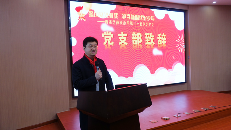2025 年 11 月 25 日,中国少年先锋队上海市青浦区颜安小学第二十五次代表大会在西部校区三楼阶梯教室隆重召开。本次大会以 “强国复兴有我,争当新时代好少年” 为主题,在学校精心的组织部署下,学校党支部书记、校长刘建,党支部副书记魏勇,副校长张莉莉,德育主任孙玉姣,全体辅导员老师及 45 名少先队员代表齐聚一堂,共商少先队发展大计。
