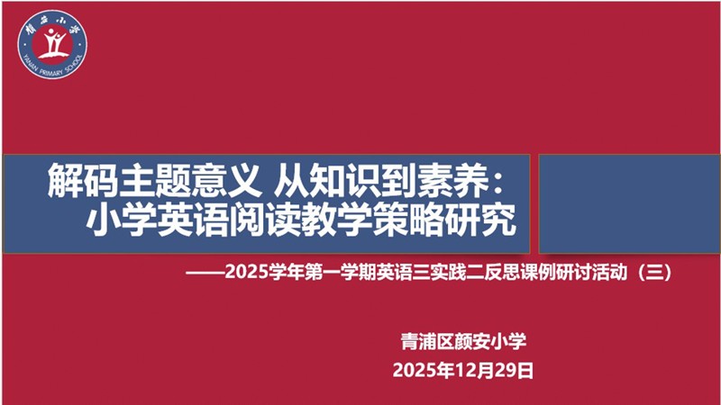 解码主题意义、推动从知识传授到素养培育的转型,是落实核心素养教育的关键路径,也是优化小学英语阅读教学的重要方向。2025 年 12 月 29 日,颜安小学英语组开展三实践二反思课例研讨活动(三)。本次活动聚焦 “解码主题意义 从知识到素养” 的核心主题,围绕小学英语阅读教学策略展开深度研讨,由英语分管尤菊萍老师主持,全体英语教师参与活动。