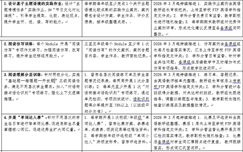 根据四年级绿标调研的学校质量管理任务清单要求,组内辅以二、三年级课后作业单为范例,研讨中高年级作业优化路径。坚持分层设计、情境化、实践性原则,整合基础巩固、能力提升、拓展探究三类任务,让作业紧扣课堂目标、适配学情、可评可测,充分实现教、学、评一致性原则。