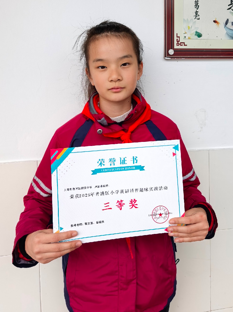 近日,青浦区小学英语科普趣味实践活动圆满落幕,我校学子凭借扎实的英语功底、丰富的科学素养与出色的实践能力惊艳赛场,喜获佳绩。